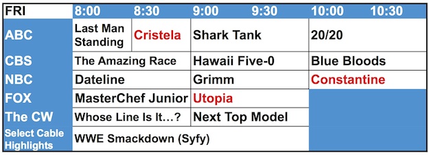 The following is the Friday night schedule (courtesy of TV Line):