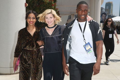 Mandip Gill, Jodie Whittaker and Tosin Cole [Photo Credit: Joe Scarnici/Getty Images for BBC America]