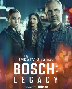 The spin-off Bosch: Legacy will debut online on IMDb TV on May 6. Bosch (Titus Welliver) embarks on the next chapter of his career and finds himself working with his one-time enemy, Honey Chandler (Mimi Rogers). The cast includes Steven Flynn, Madison Lintz and Phil Morris.
