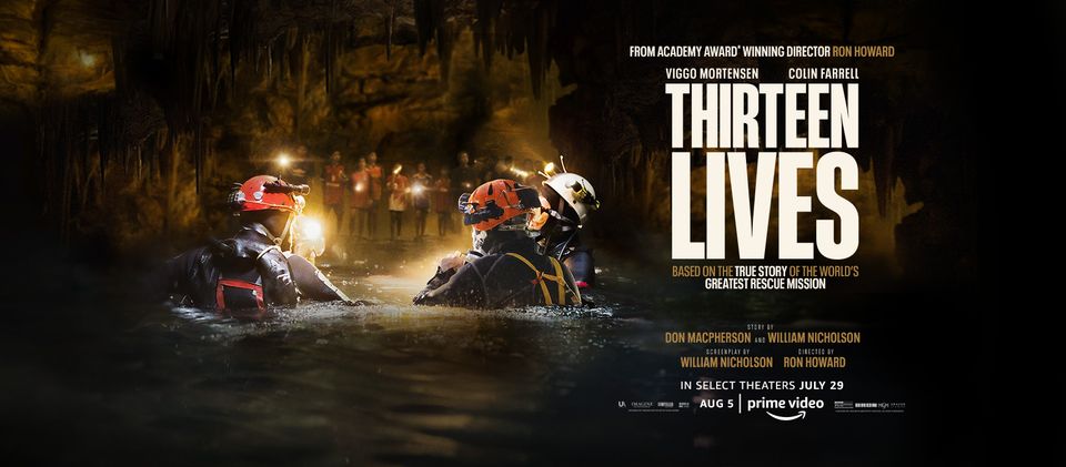 The Amazon feature film Thirteen Lives will debut online on August 5. In this true story, twelve boys and the coach of a Thai soccer team explore the Tham Luang cave when an unexpected rainstorm traps them in a chamber inside the mountain. Entombed behind a maze of flooded cave tunnels, they face impossible odds. A team of world-class divers navigate through miles of dangerous cave networks to discover that finding the boys is only the beginning. The cast includes Viggo Mortensen, Joel Edgerton and Colin Farrell.